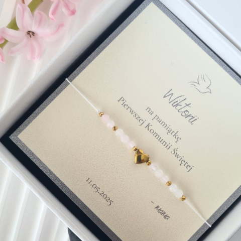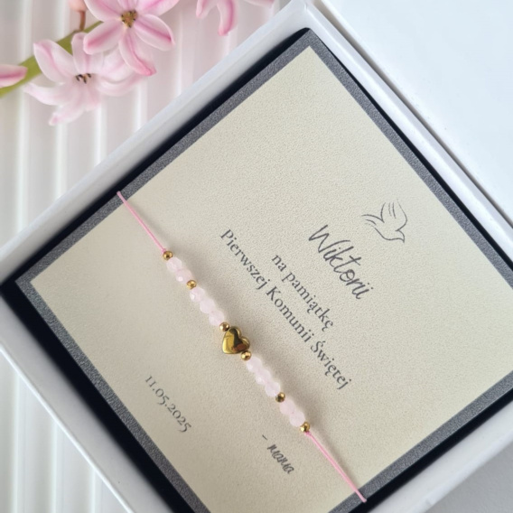 Centralnym elementem bransoletki jest hematytoweserduszko, które przypomina o sile miłości i wartości, jakie niesie ze sobą Pierwsza Komunia Święta.