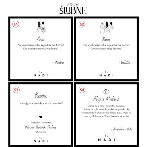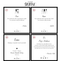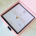 Do każdej bransoletki dołączona jest kartka z gotową dedykacją – możesz wybrać spośród dostępnych wzorów okazję, która najlepiej pasuje do osoby obdarowywanej.