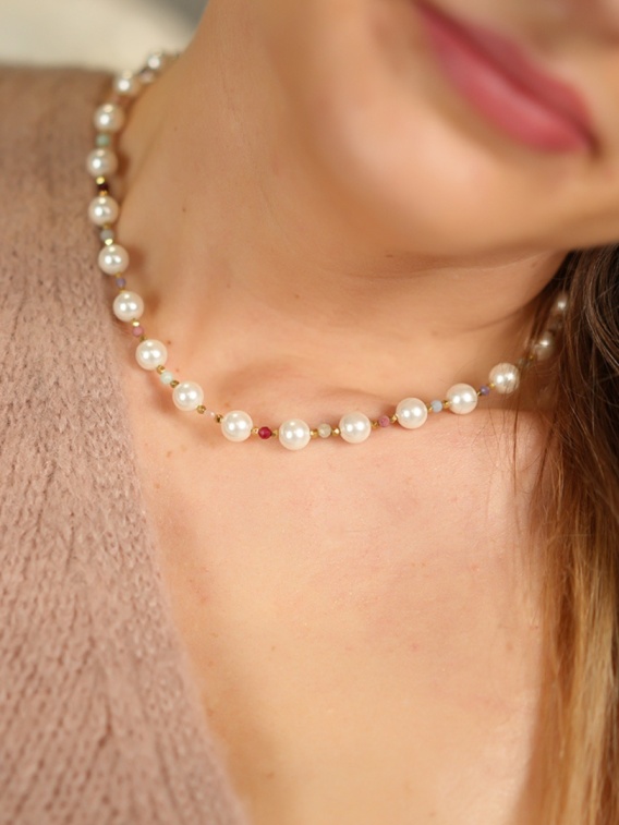 Perła - Symbol czystości i elegancji, perła dodaje naszyjnikowi delikatnego blasku i klasy. Jej ponadczasowe piękno przyciąga uwagę i dodaje subtelnej wyrafinowania każdej stylizacji.