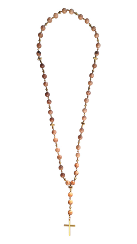 Solace to ręcznie pleciony naszyjnik wykonany z naturalnych kamieni – perskiego jadeitu i złotego hematytu, ozdobiony hematytowymi krzyżami oraz zawieszką w kształcie krzyża. Minimalistyczny design, wyraziste detale i głęboka symbolika sprawiają, że naszyjnik idealnie podkreśla styl i osobowość swojego właściciela.