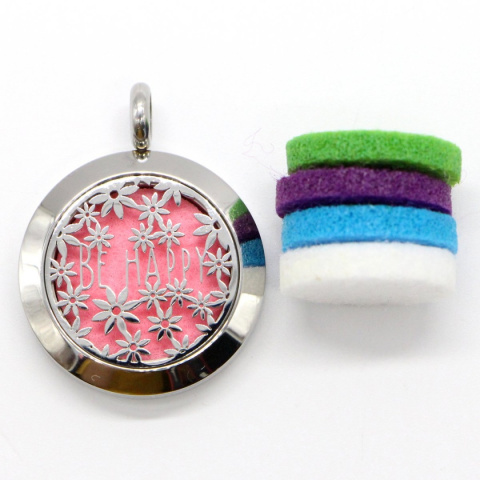 Nasze naszyjniki z medalionami aromaterapeutycznymi to nie tylko biżuteria, to prawdziwe dzieła sztuki i oryginalne projekty. Ich szybkość użycia i łatwość utrzymania sprawiają, że są idealnym dodatkiem do Twojej codziennej rutyny. Dzięki specjalnej bibułce, którą nasączasz ulubionym olejkiem eterycznym, możesz cieszyć się przyjemną dyfuzją zapachu wokół siebie.  Nasz naszyjnik pełni również rolę nośnika perfum, umożliwiając dodanie kilku kropli gotowej mieszanki, na przykład naszego popularnego zapachu PEARL EVENTNasze naszyjniki nie tylko zachwycają wzrok swoim modnym motywem "Be Happy", ale również pozwalają łatwo zmieniać olejki eteryczne lub zapachy dzięki zestawowi 5 bibułek w różnych kolorach.