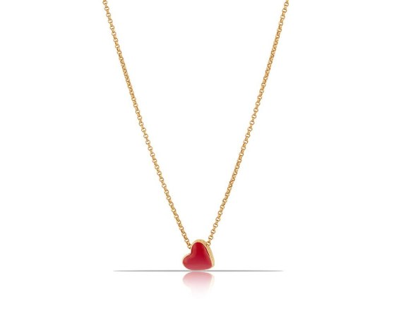 Pozłacany naszyjnik z ręcznie malowanym na czerwono sercem.