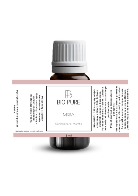 100% czysty olejek eteryczny Bio, destylowany z żywicy mirry.