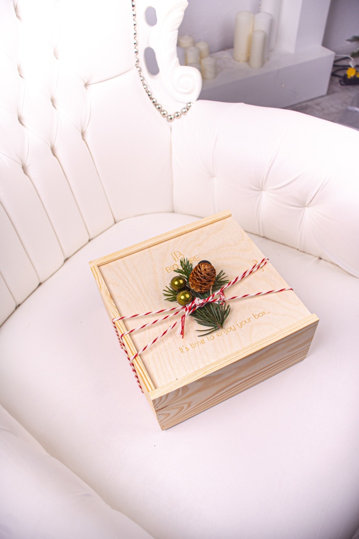 W naszej ofercie obok drewnianego pudełka w dwóch rozmiarach30x30cm i 20x20cm jest również kartonowe w stylu eco 26x20x10,5cm, ale i również pojawiają się wersje limitowane w różnych kształtach, kolorach.